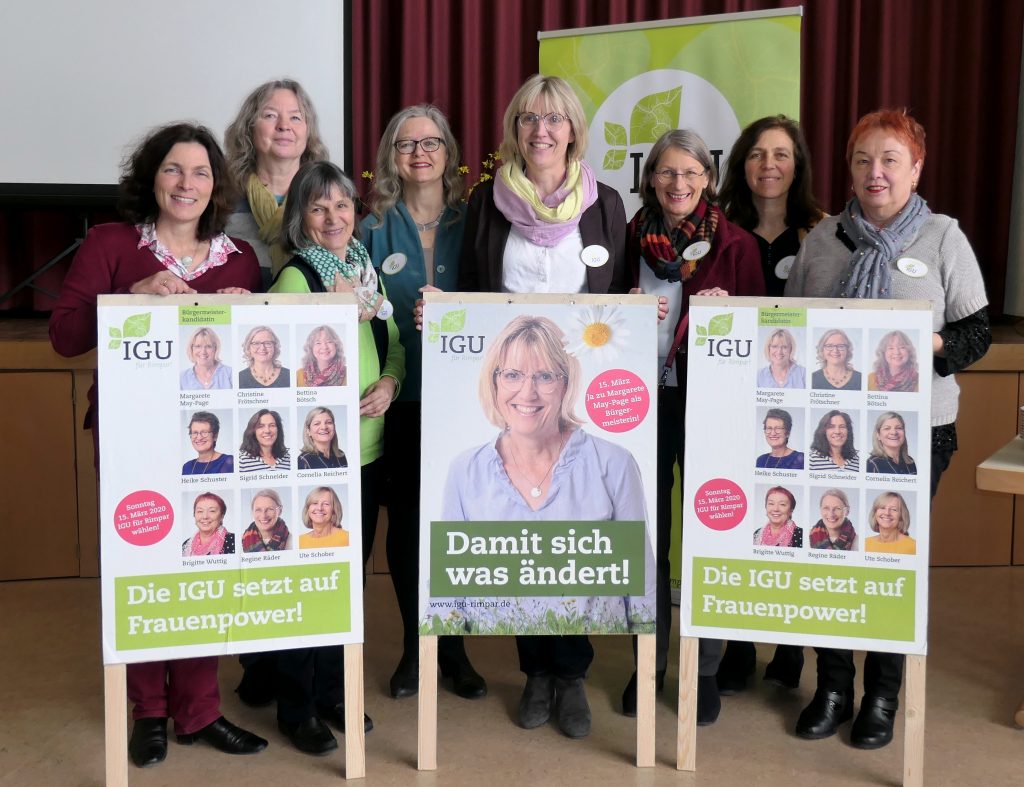 Auch in den Gemeinde- und Stadträten des Landkreises sieht es nicht anders aus: derzeit sitzen dort 172 Frauen und 578 Männer (22,93% Frauen). Von 52 Bürgermeistersesseln sind im Landkreis Würzburg derzeit zehn von Frauen besetzt (19 %). Das soll sich mit der Kommunalwahl am 15. März dringend ändern, dafür kämpfen Margarete May-Page und ihre Mitstreiterinnen von der IGU für Rimpar.